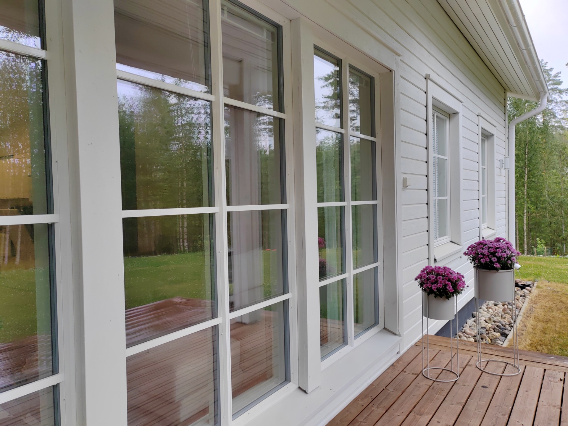 Ikkuna- ja parvekelasien pesu ilman kemikaaleja, jolloin ikkunat pysyvät pidempään puhtaina.